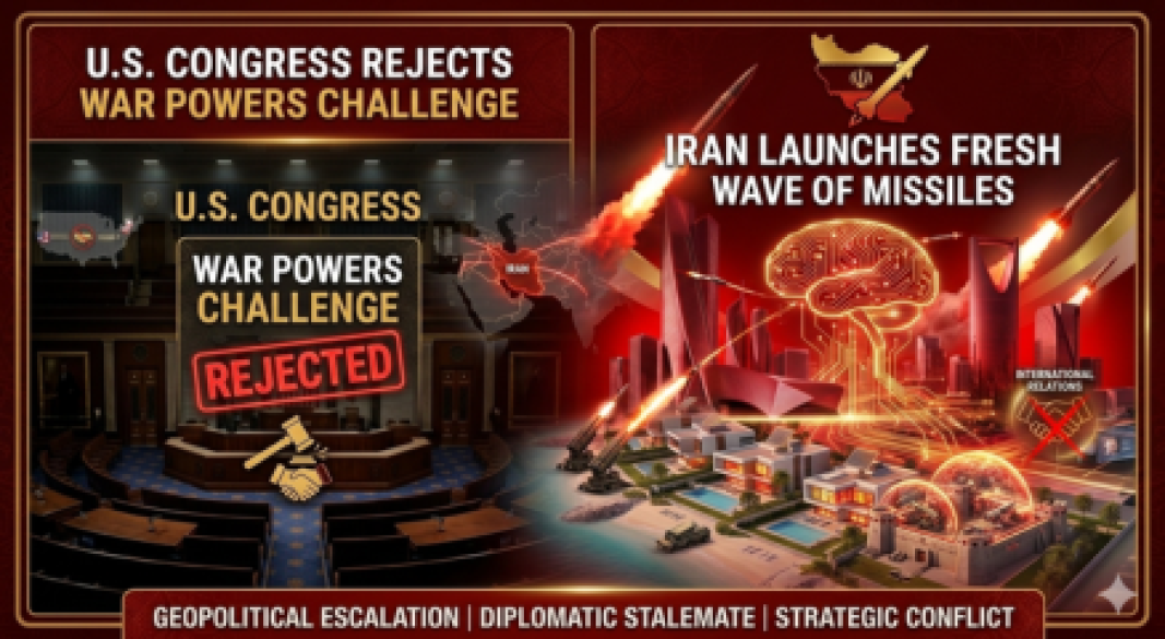 Iran escalated its retaliatory campaign on Thursday, unleashing a renewed barrage of missiles and drones across the Persian Gulf region, as the United States Congress voted to continue supporting the Trump administration's military offensive against Tehran without requiring prior congressional authorisation.